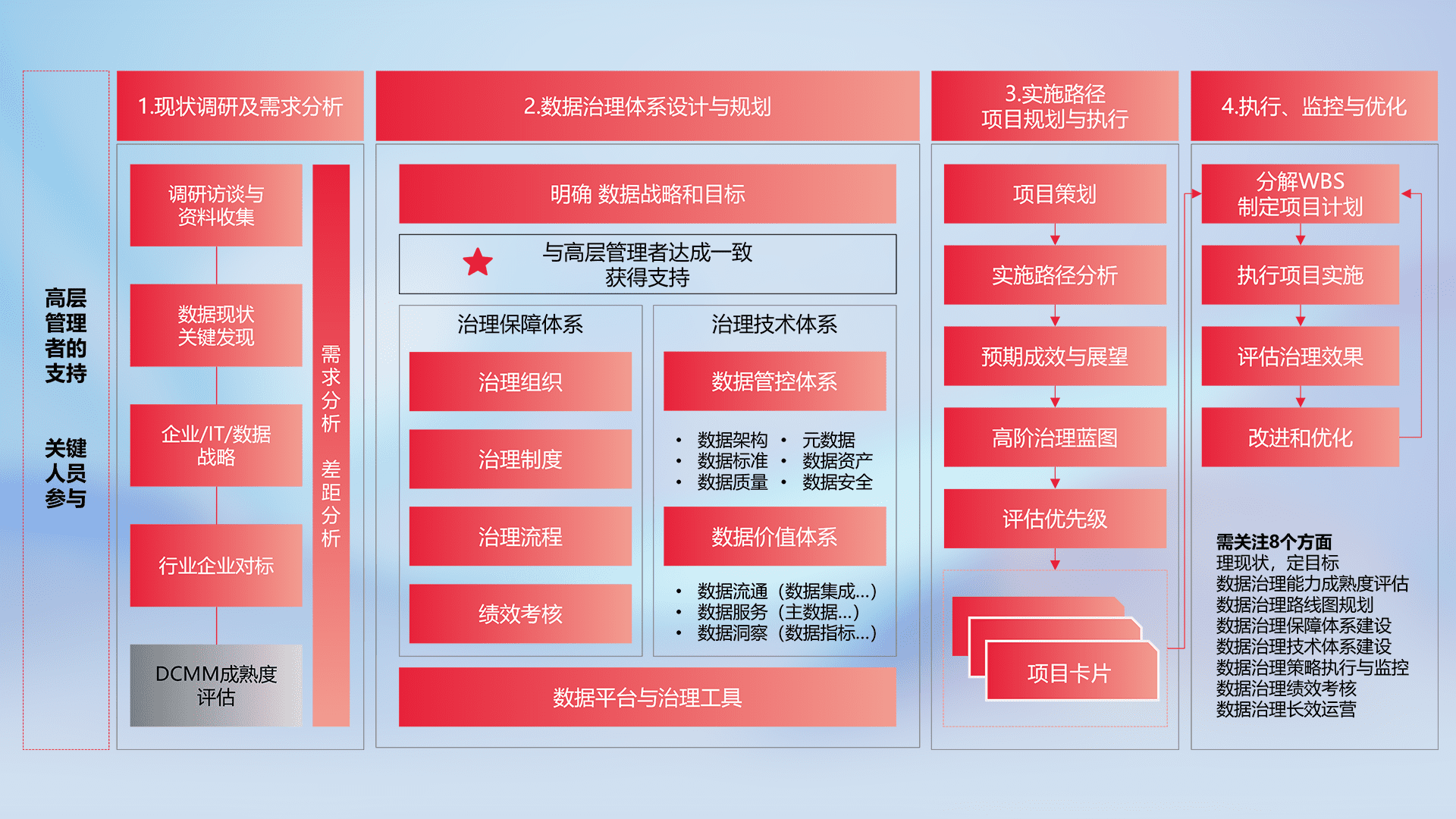 制定并执行统一的数据标准,,,,规范数据定义和格式,,消除冗余和不一致性,,,,实现跨部门和跨系统的数据一致性,,,,为企业提供标准化的数据基础。。。。